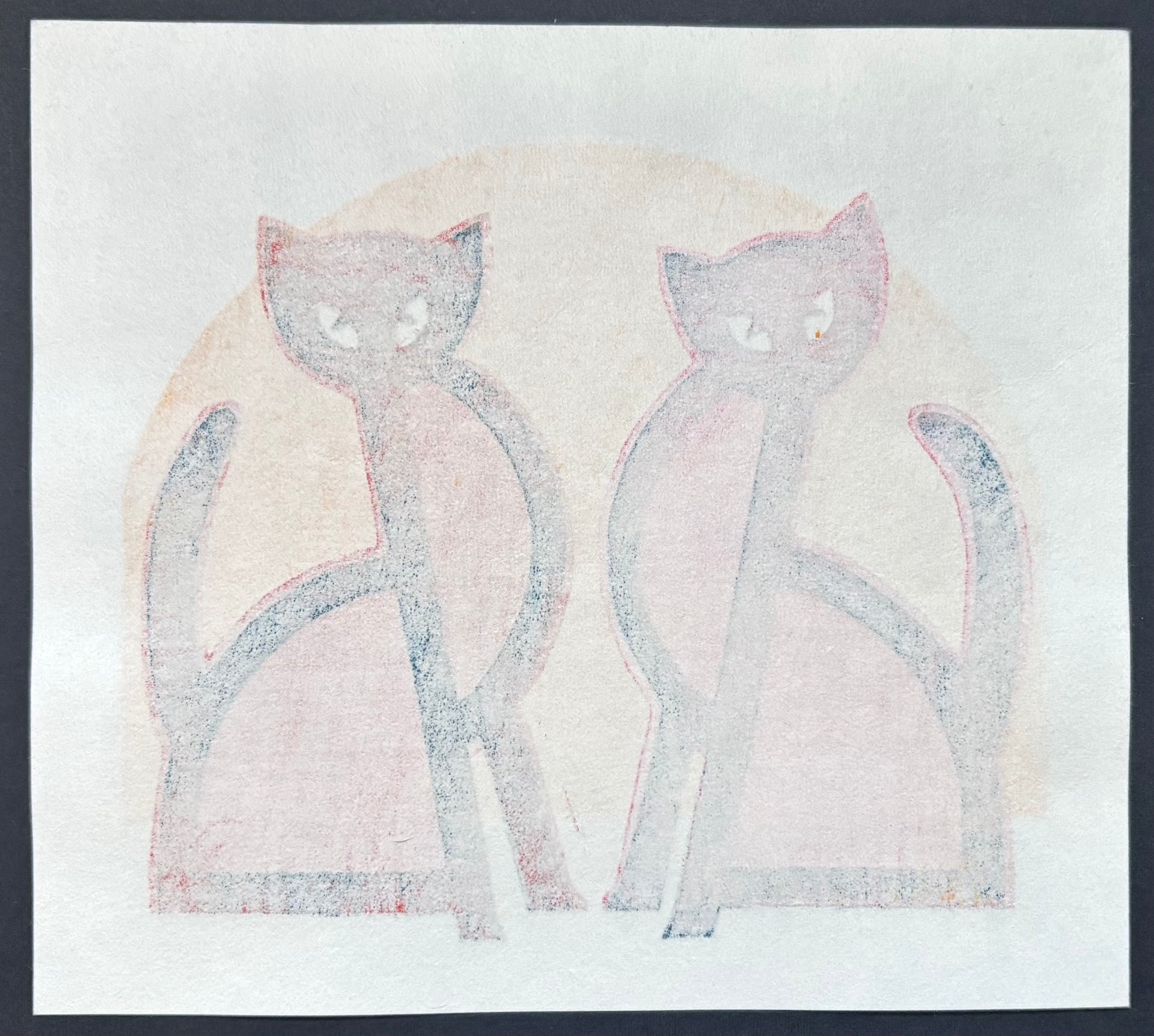 This print depicts two cats rendered with simple, clean lines, creating a distinctly modern aesthetic. The vibrant colors enhance the composition, making it a striking and engaging work of art.
