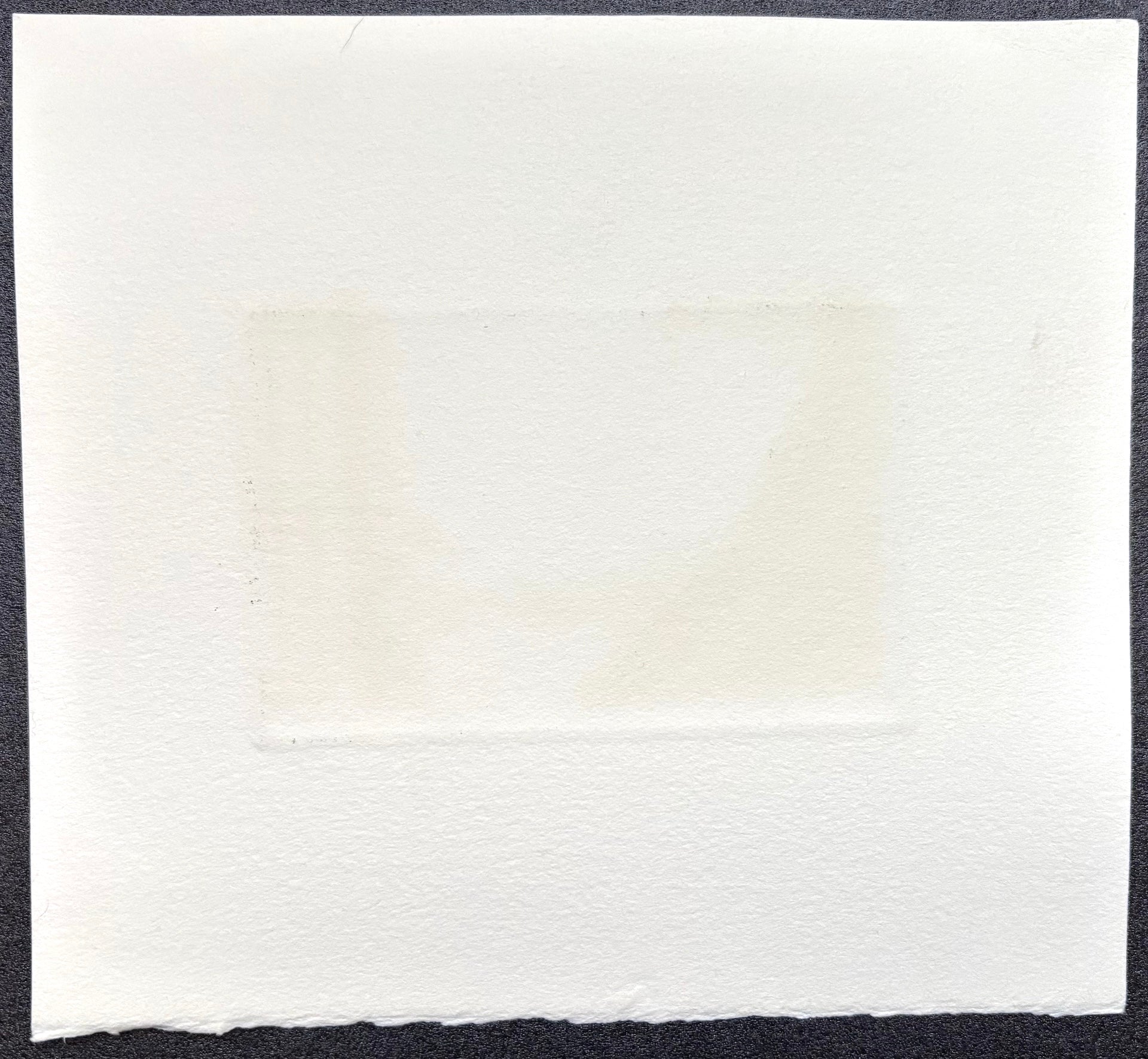 The serene etching print “Niwa” (Japanese Garden in Autumn) is by Hiroto Norikane. This print captures a beautiful garden scene in autumn. Through a round window, you can see colored leaves and a stone lantern, beautifully composed in a calm and peaceful setting.