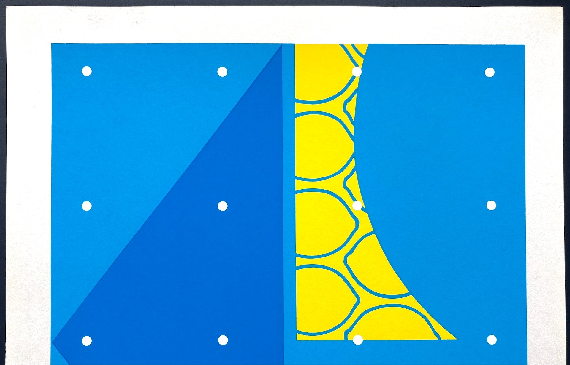 The striking woodblock print "Summer", from The Lemon and the Four Seasons of Japan series, is by Yoshisuke Funasaka. This series features his iconic lemon motif interpreted through Japan’s four seasons, with this work embodying the freshness of summer. The exceptionally large format is immediately eye-catching. Vibrant blue tones create a beautiful contrast with the lemons, resulting in a refreshingly crisp composition. Its simple elegance and vivid palette make it an excellent complement to modern décor.