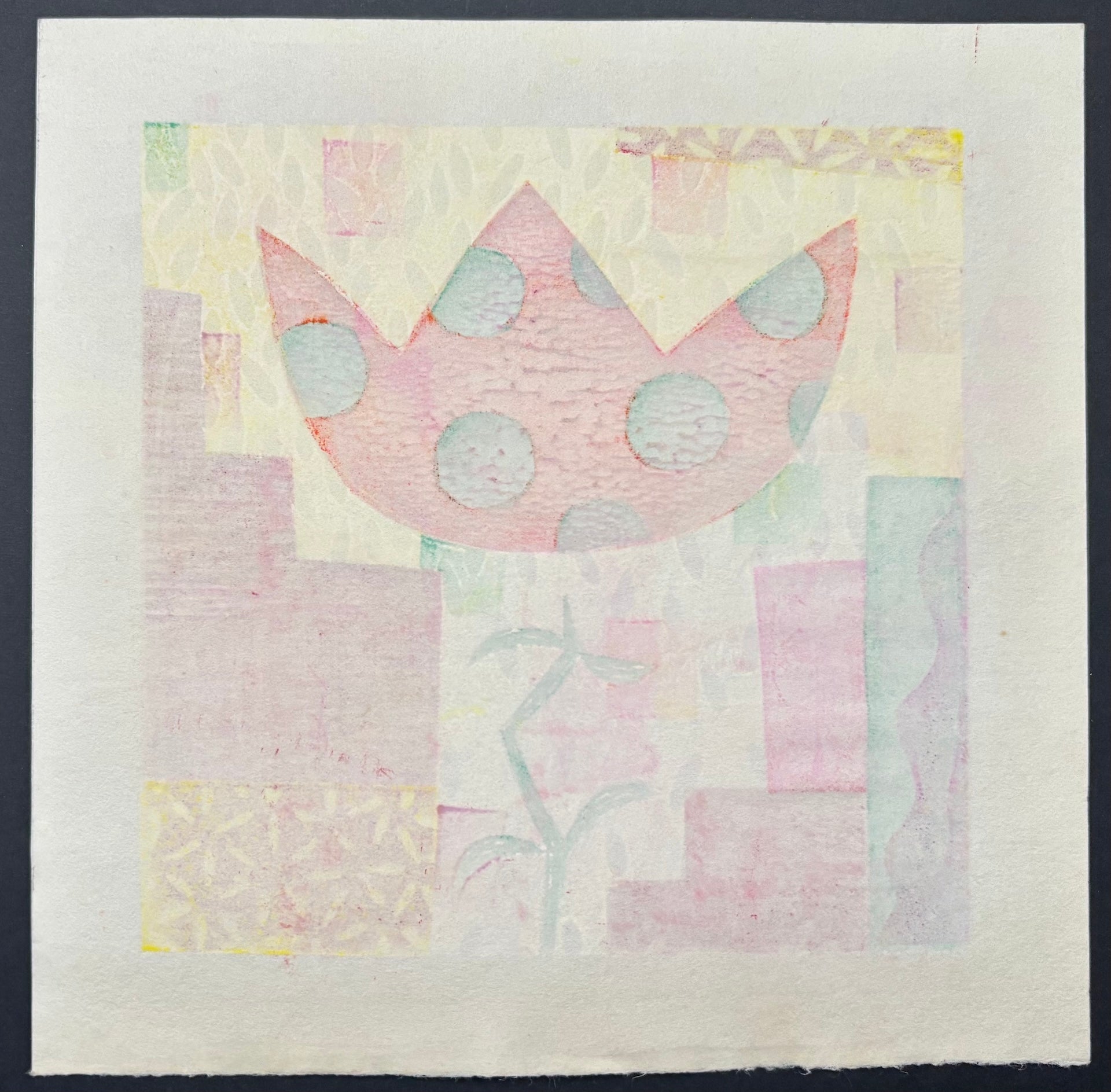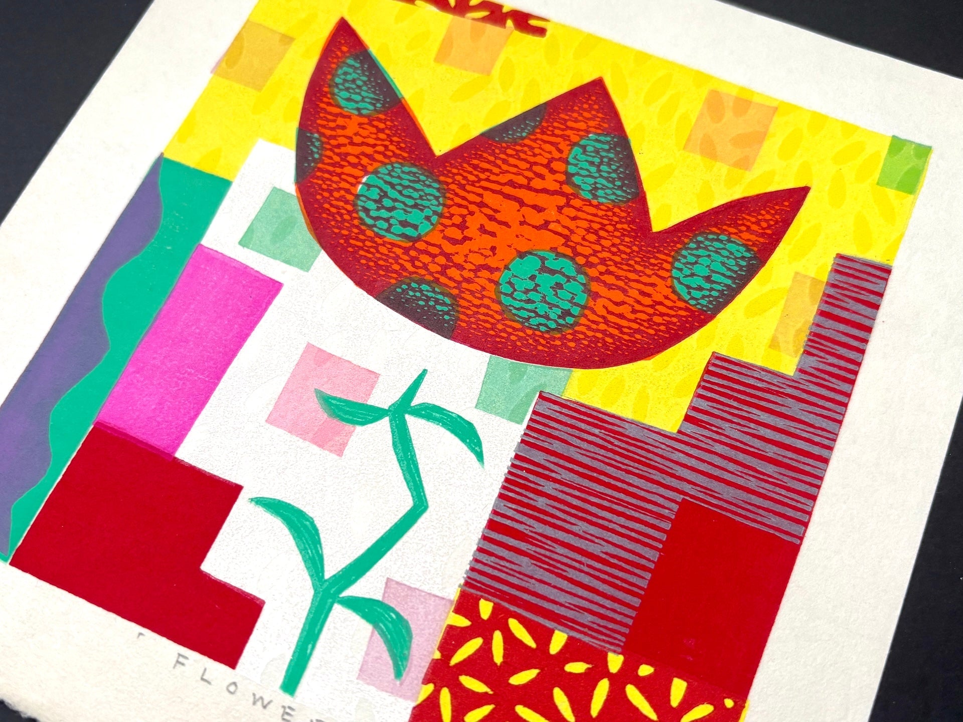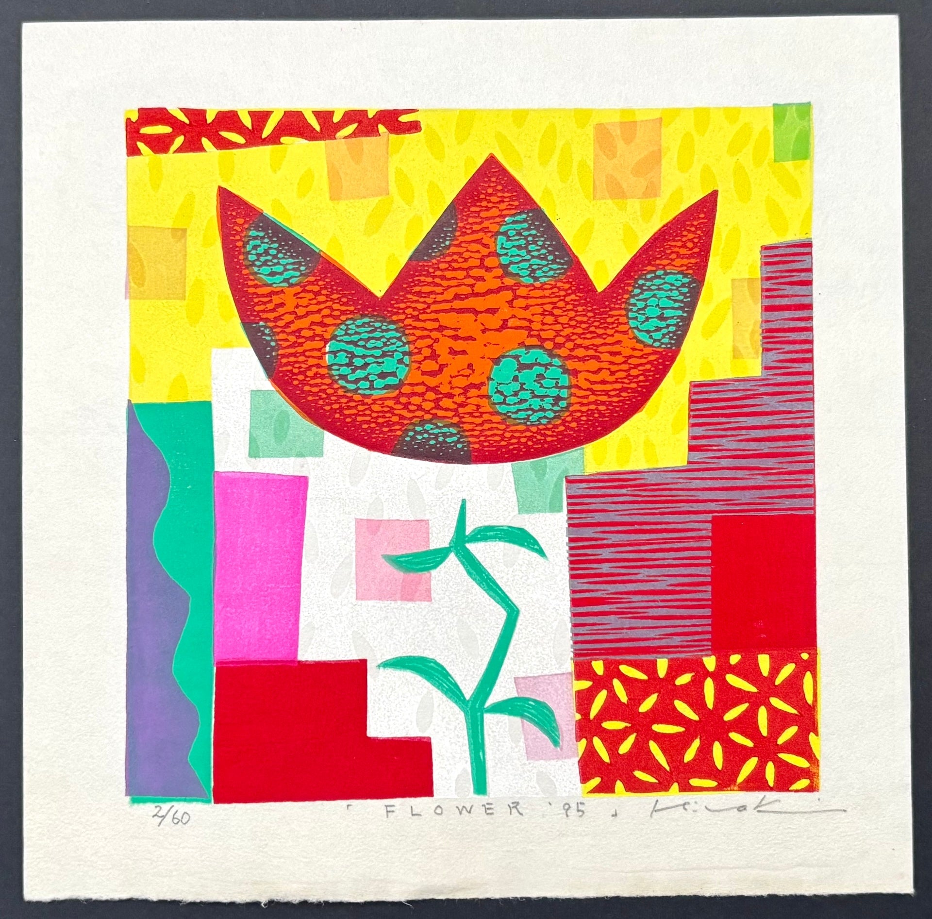 The darling woodblock print “FLOWER '95” (Appetite at the Desk) by Mitsuru Hiraki (b. 1958) captures the joy of small, everyday moments. Part of a series inspired by houses and their surroundings, the work reflects the artist’s delight in simple discoveries and quiet surprises. Hiraki’s playful, pop-inspired style and cheerful colors bring a sense of warmth and magic, making this print a lovely and uplifting addition to any room.