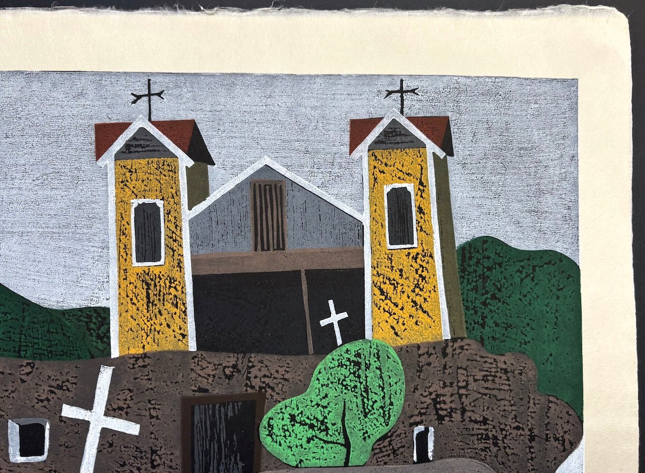 The atmospheric woodblock print Kokoro no Yado, Santa Fe 2 (Heart Rest, Santa Fe, 1956 [2]) is by Kiyoshi Saito. This simple yet captivating image captures Santa Fe in the 1950s, evoking a sense of nostalgia and charm. The bold colors and chic composition enhance the allure of Saito’s work. His ability to capture the essence of a place with such simplicity is truly remarkable.