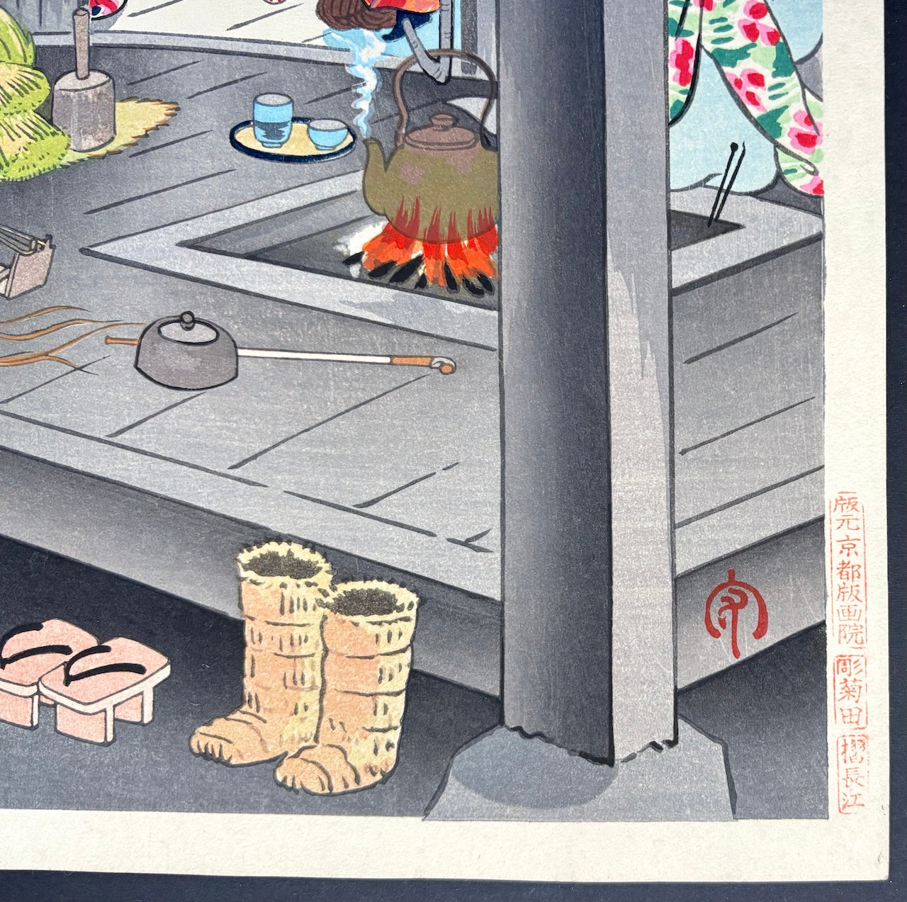 Published by Kyoto Hanga-in, the print bears the carver’s name, Kikuta, and the printer’s name, Nagae, along with the publisher’s seal in the lower right margin.