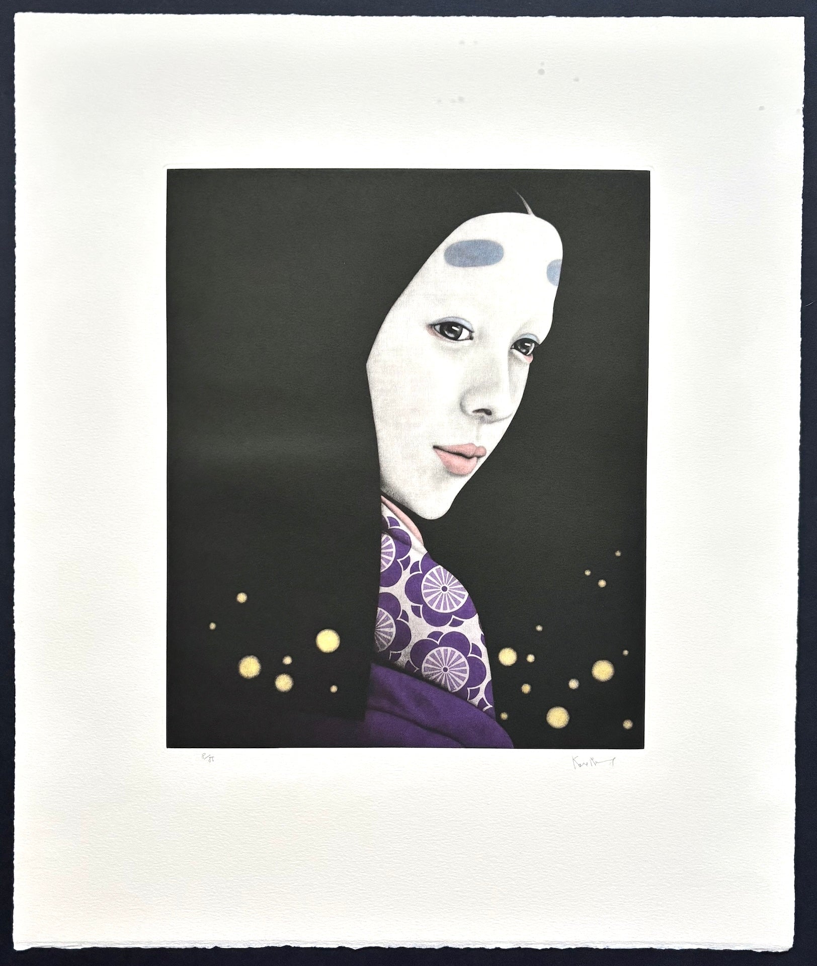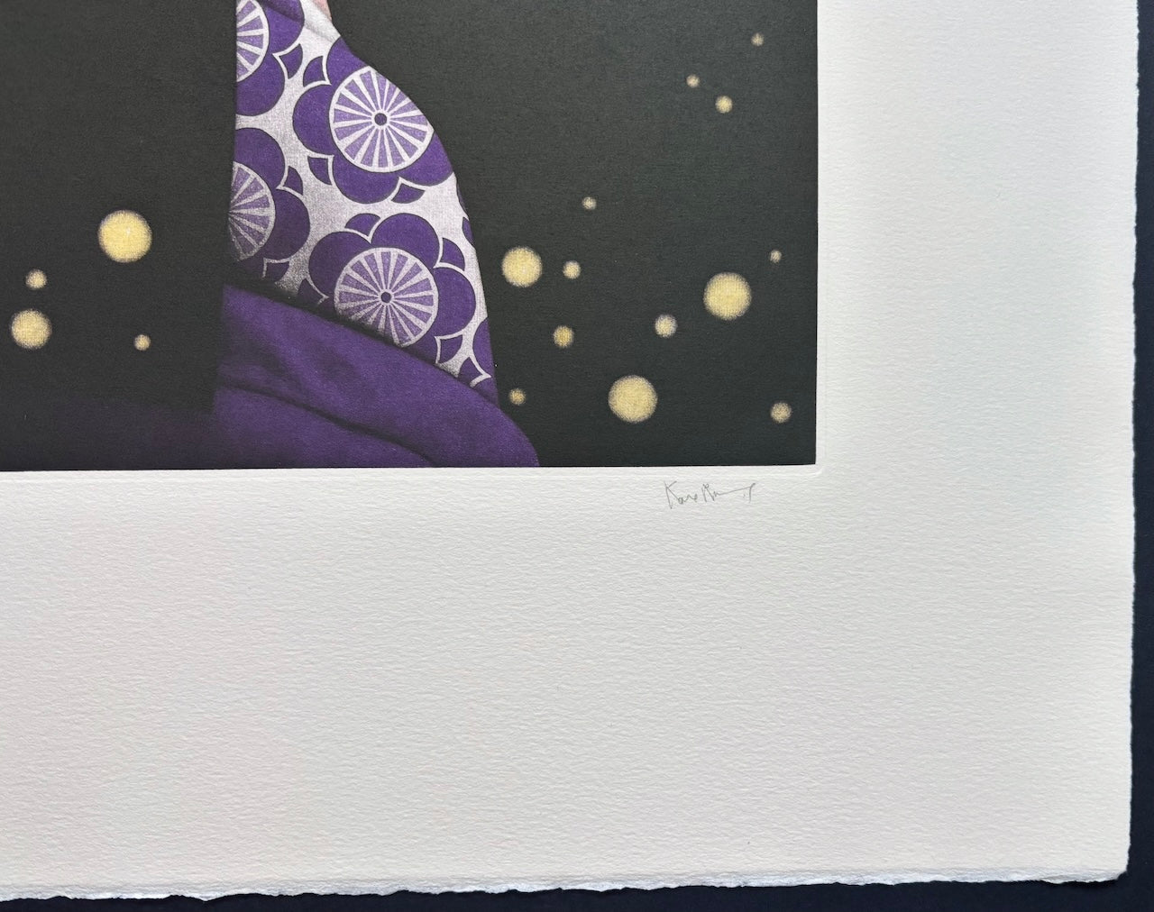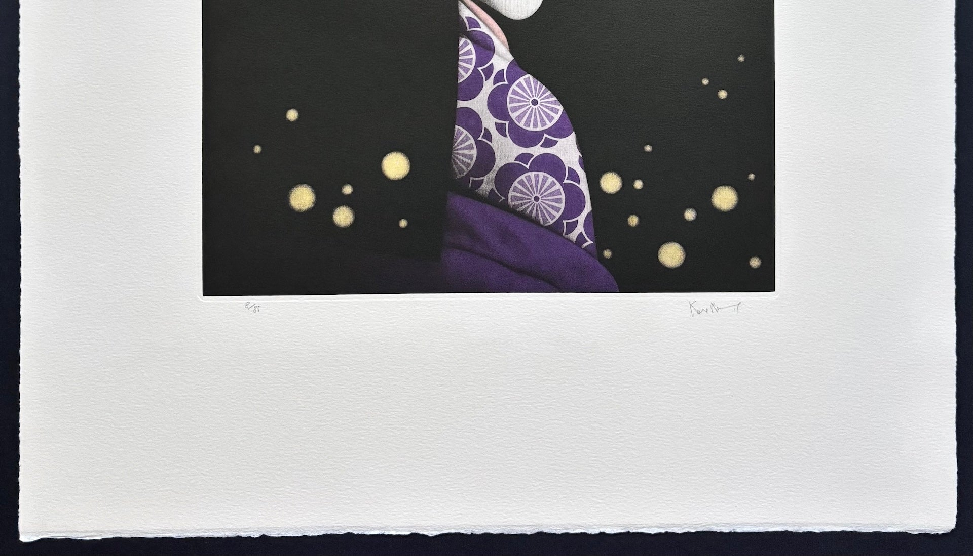 The remarkable print “Yume no Ukihashi” (The Floating Bridge of Dreams) from The Tale of Genji is by Kaoru Saito. The Tale of Genji is a renowned work of Japanese literature written by Murasaki Shikibu in the early 11th century during the Heian period. It depicts the life of Hikaru Genji, the son of an emperor, and offers an intimate portrayal of the aristocratic society of the time.