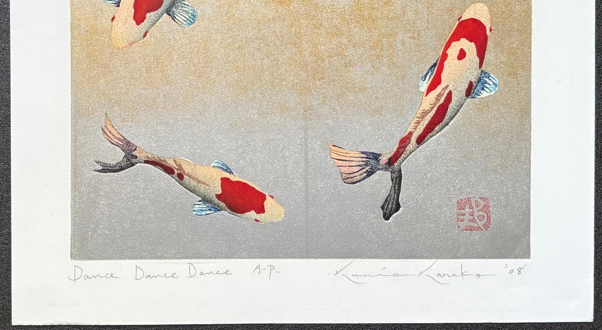 The striking print “Dance Dance Dance” by Kunio Kaneko is a captivating work that is now long out of print. Featuring bold contrasts and vibrant, lively colors, the composition exudes energy while simultaneously creating a soothing, relaxed atmosphere—making it a wonderful addition to any space.