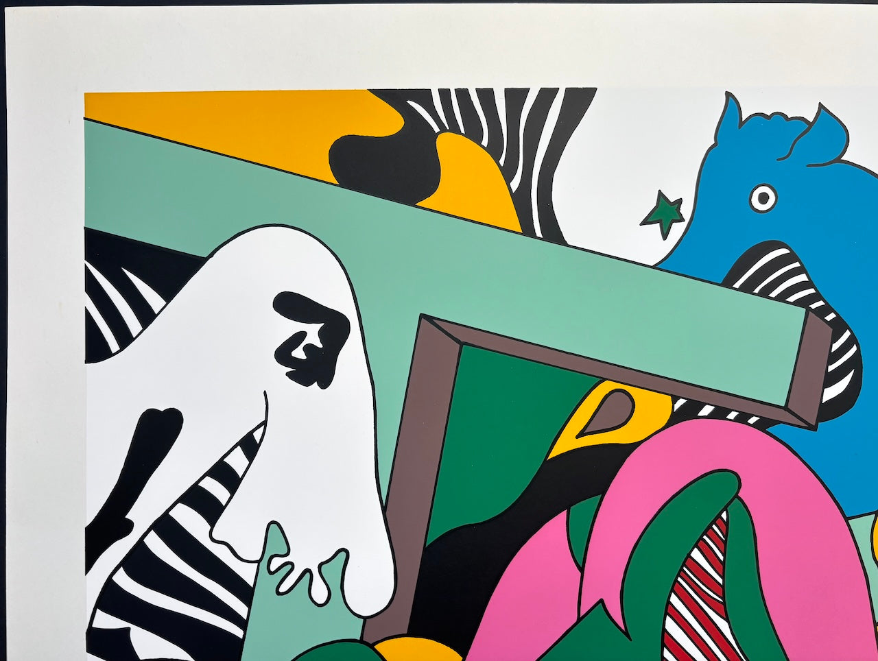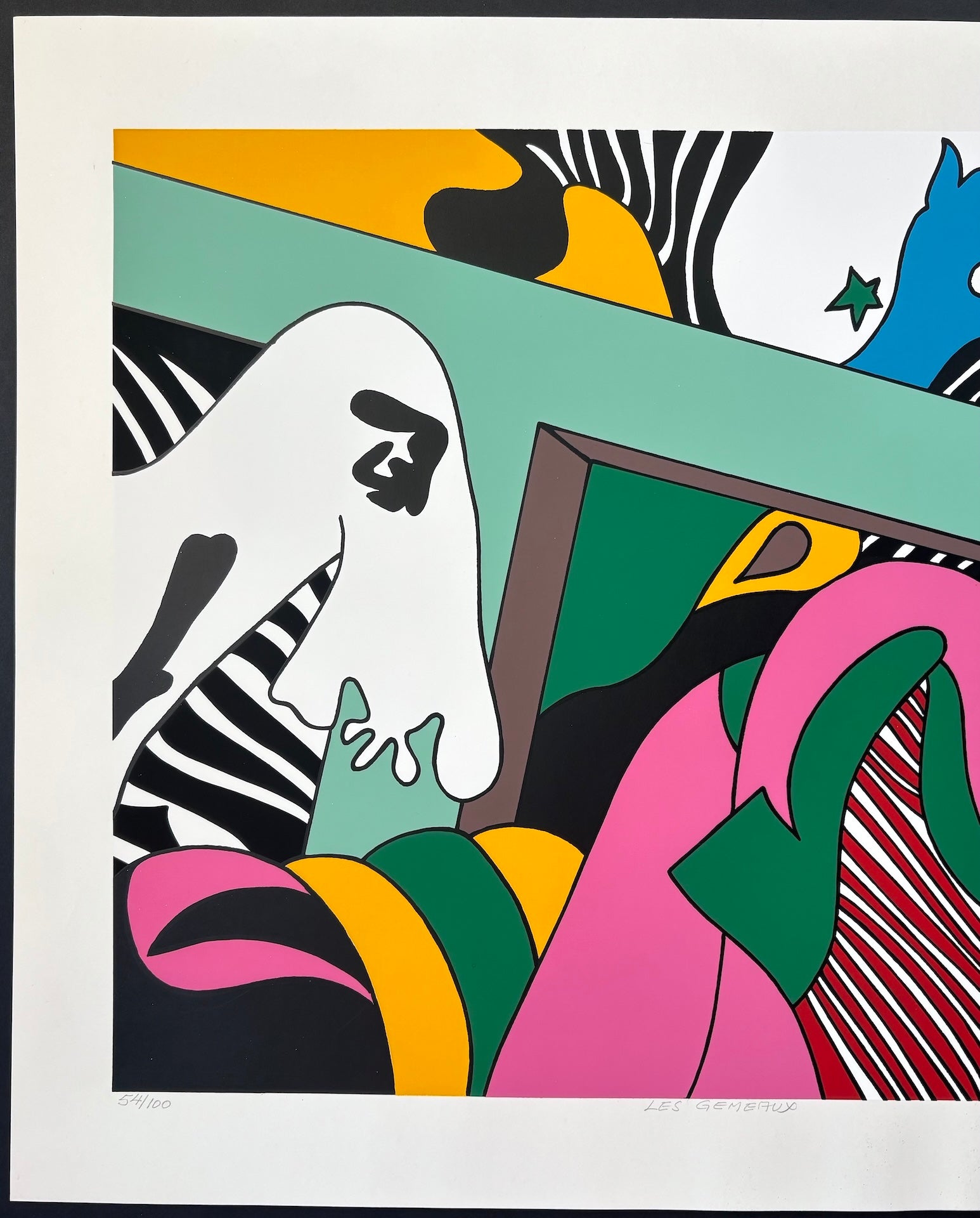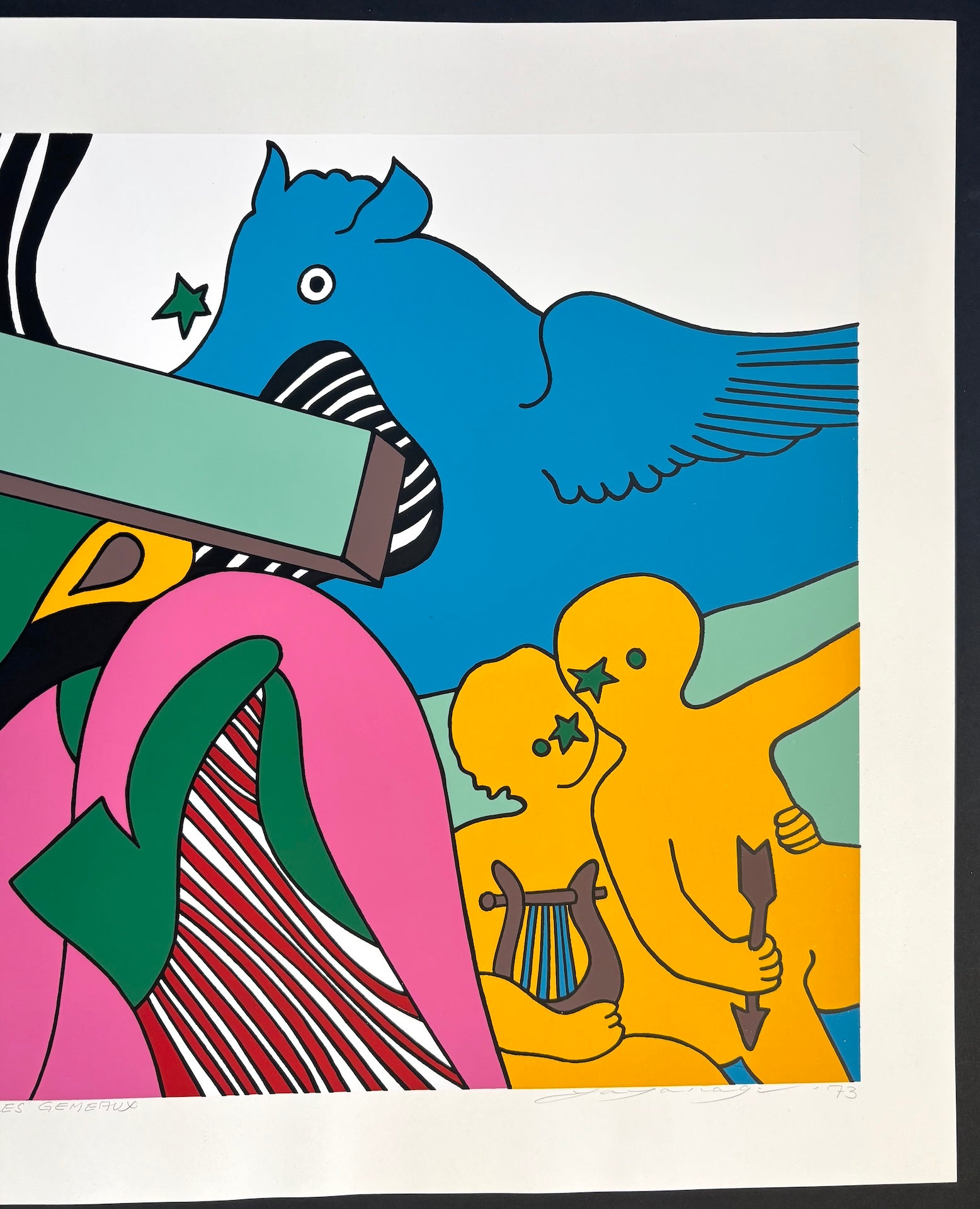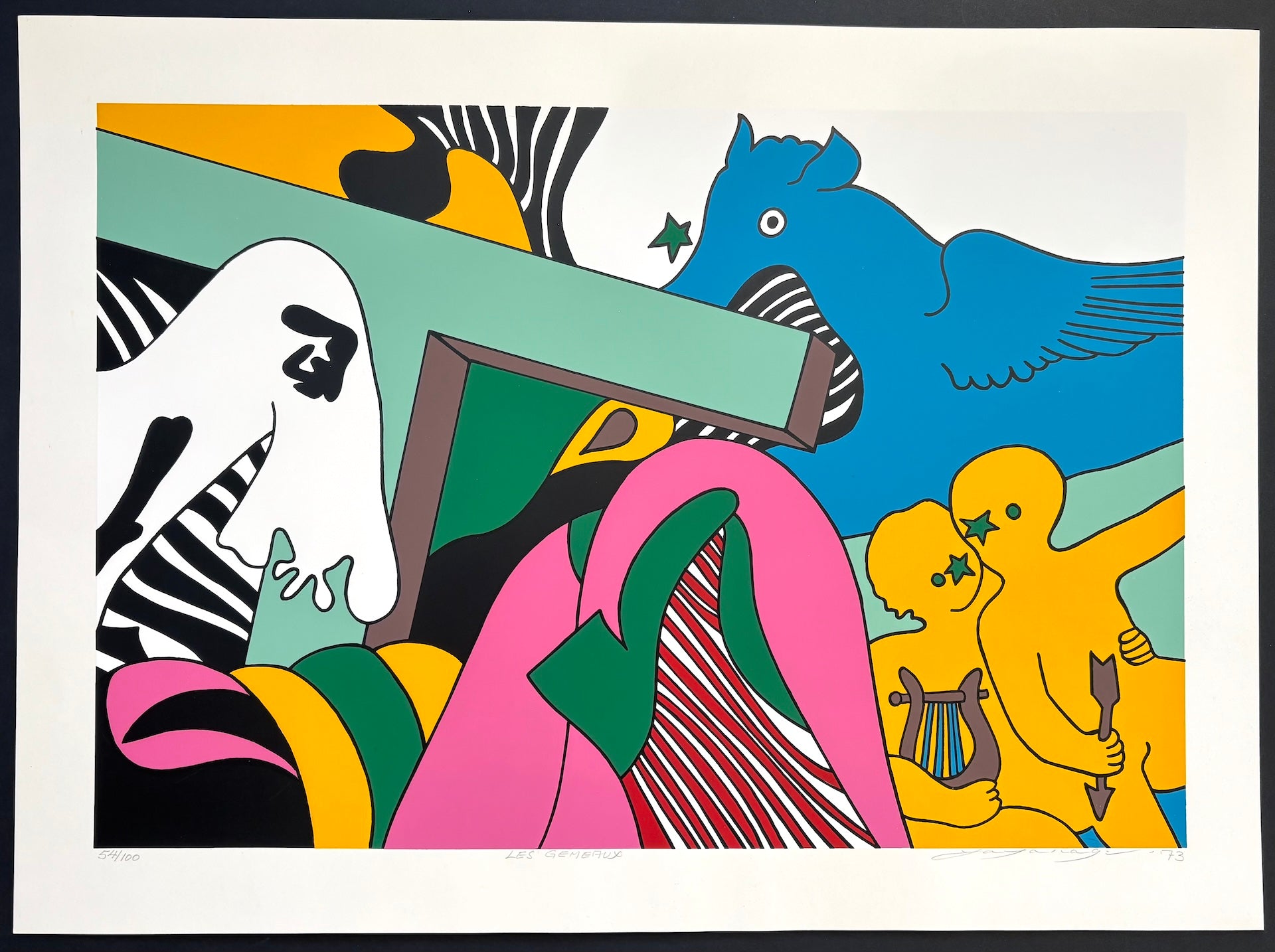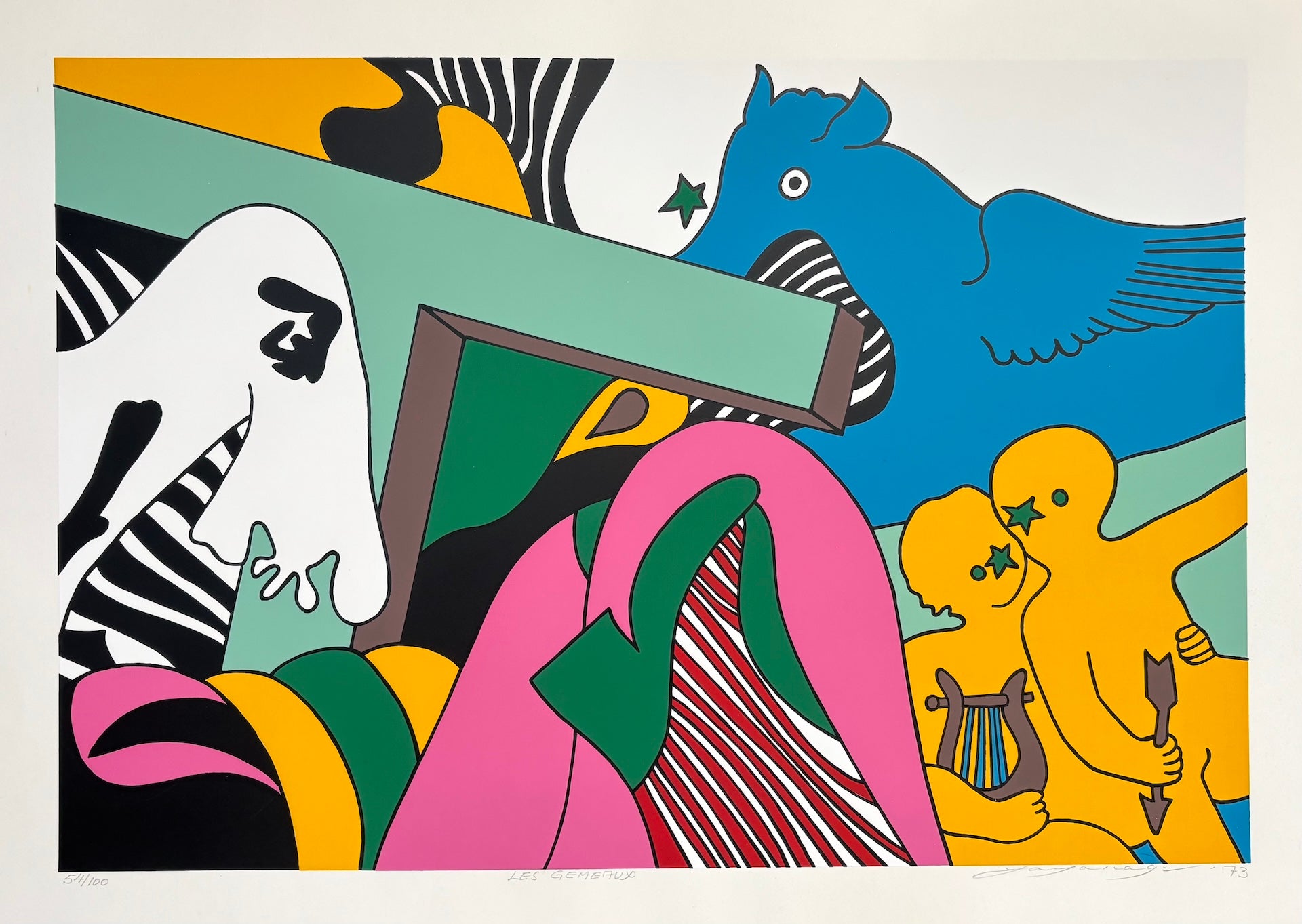 The striking print “Gemini” (Constellation Series) is by Tsuyoshi Yayanagi (b. 1933). The print depicts the zodiac sign Gemini in a unique way. It features a bold color composition and vivid hues, creating a highly dynamic design. This print would be especially meaningful for those born under the sign of Gemini (May 21–June 21).