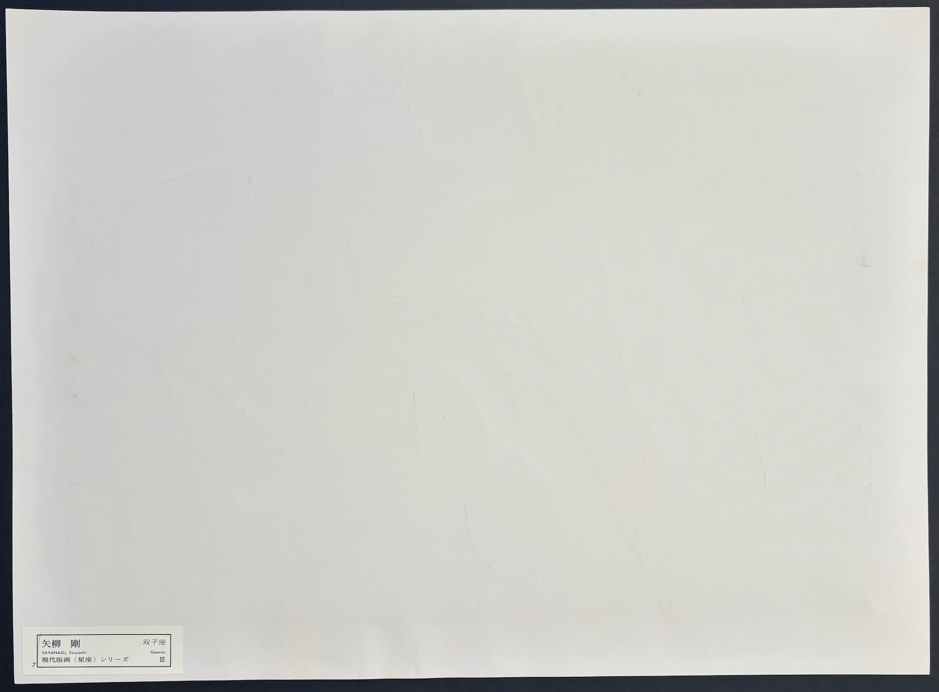 The work is pencil-signed “Yayanagi,” dated ’73, and numbered 54/100 by the artist. It is from a limited edition of only 100 prints. A sticker reading “Gemini” (Constellation Series) by Tsuyoshi Yayanagi in Japanese (Seiza Series, Futago-za) appears on the verso. Please see the photo.