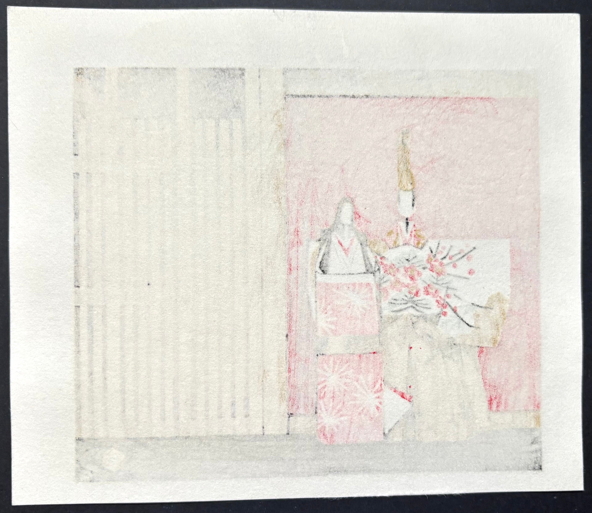 This is a small-sized woodblock print originally made for a calendar in those days, published by Watanabe. This handmade print makes a perfect decoration for a small space or a thoughtful gift for someone special.