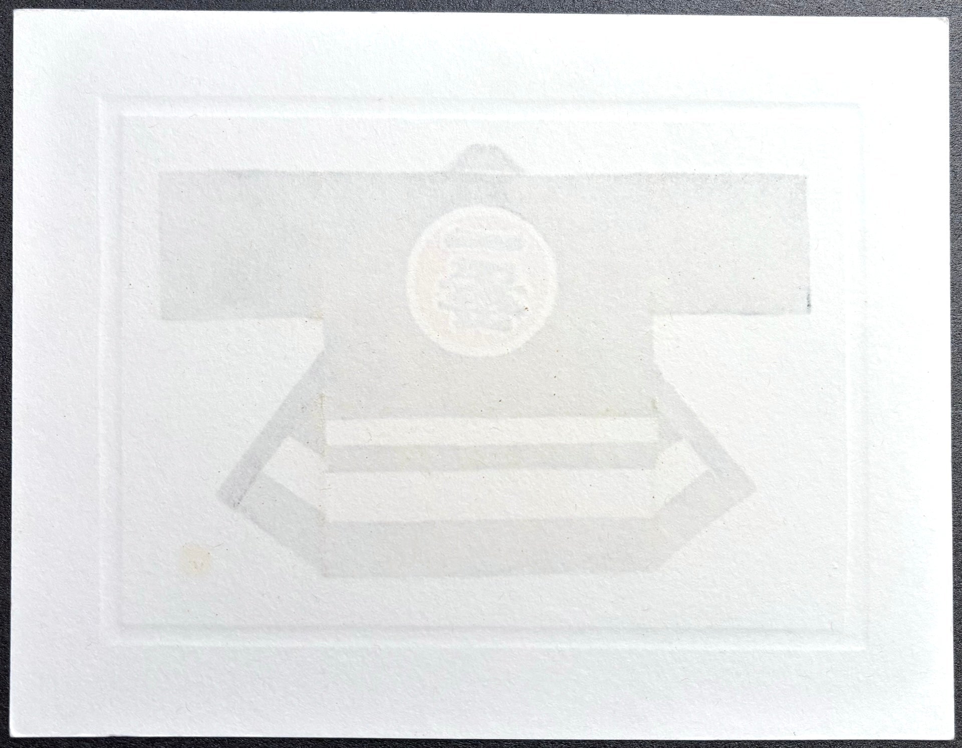 The eye-catching woodblock print "Ichi-Ichi-Ichiban Viva Miami" is by Kunio Kaneko. It features a happi—a traditional Japanese straight-sleeved coat, typically made of cotton and decorated with bold crests or lettering. The kanji character on the back, "一番" (Ichiban), translates to "number one" or "the best" in Japanese. This is a limited-edition, hand-signed print, with only 51 copies produced.