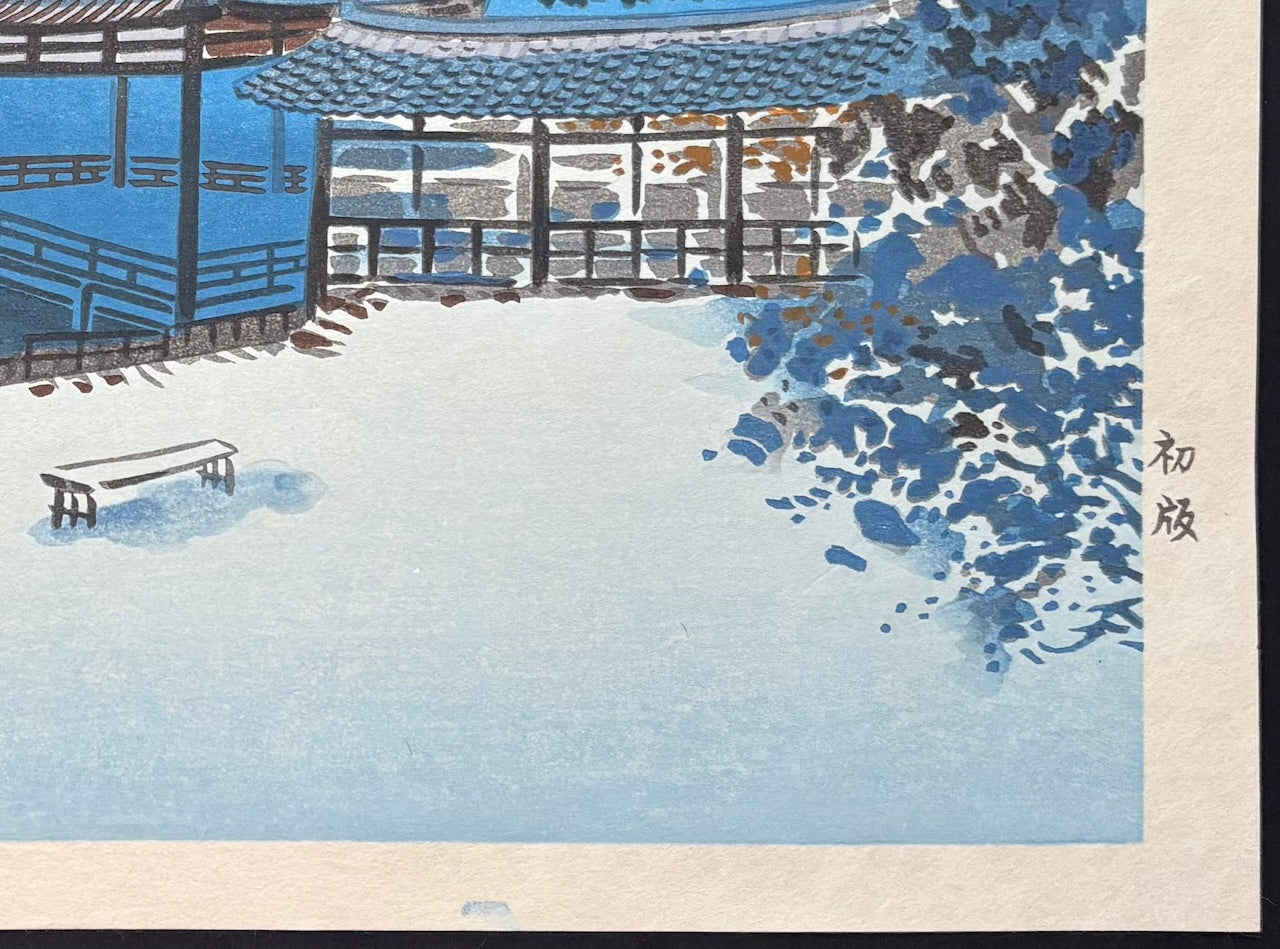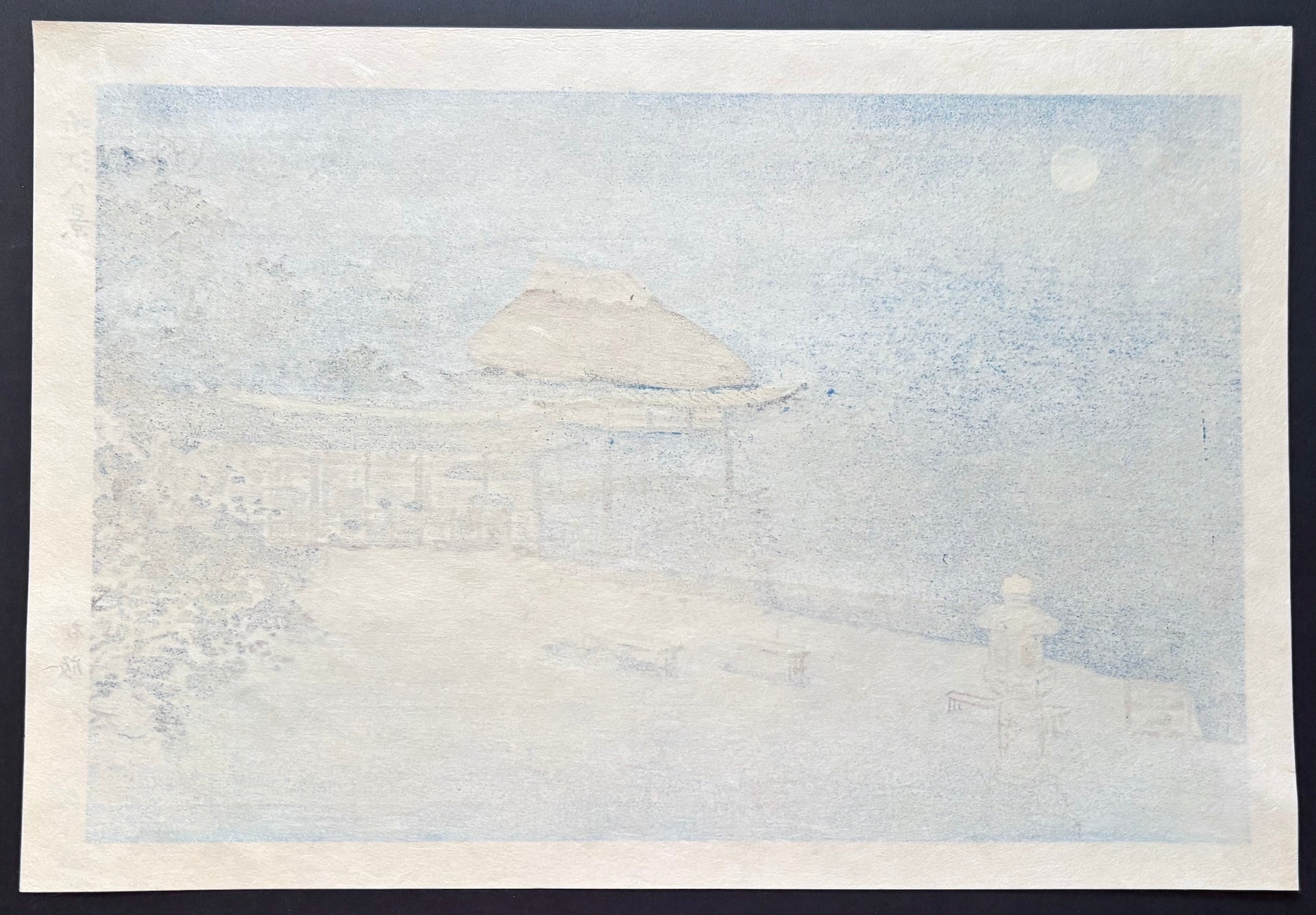 The luminous woodblock print “Ishiyama no Shūgetsu” (Autumn Moon at Ishiyama), from the celebrated series “Ōmi Hakkei” (Eight Views of Ōmi Province), by Tomikichiro Tokuriki (1902–2000), is a hand-signed, limited-edition work of quiet refinement.